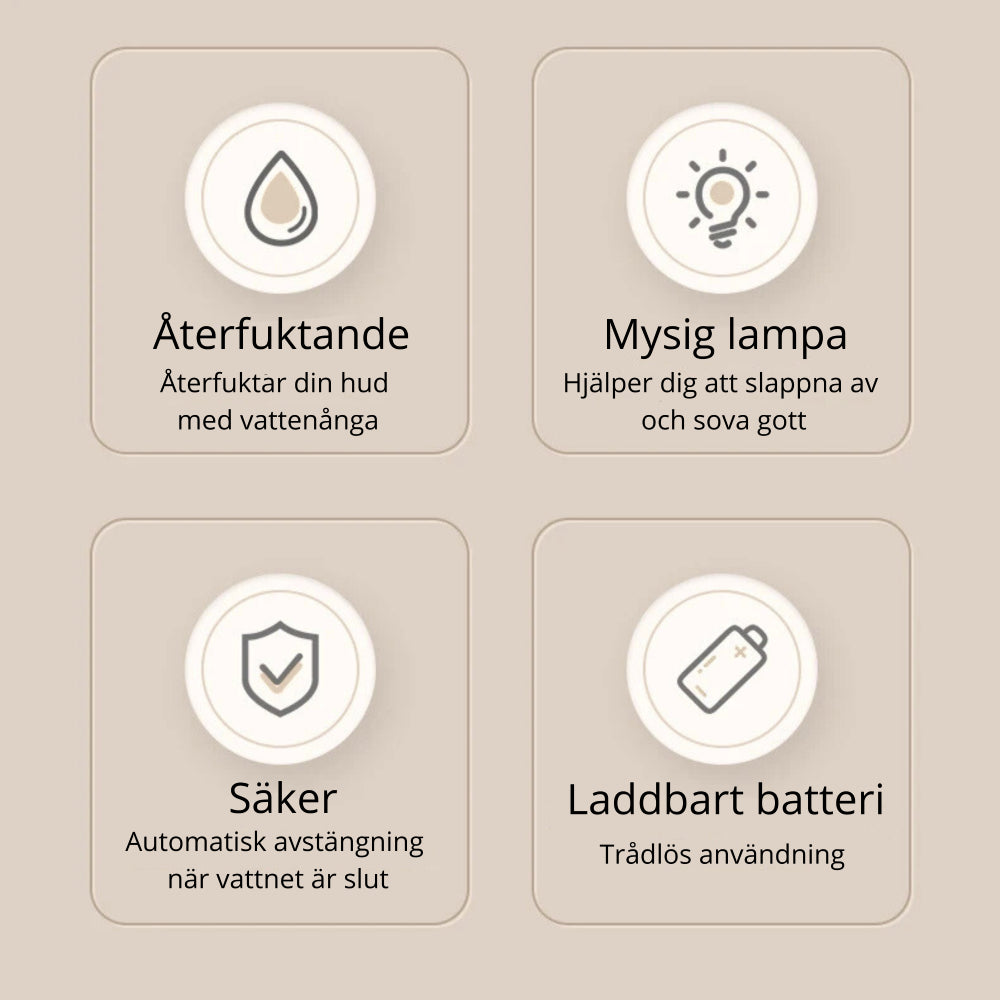 3-i-1-design: Luftfuktare, aromadiffuser och nattlampa – allt i ett.